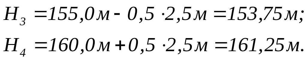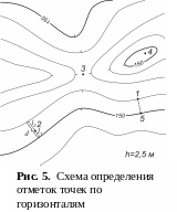 1. Отметка точки, расположенной на горизонтали, равна отметке этой горизонтали (напр., на рис. 5 Н1 = 152,5 м).