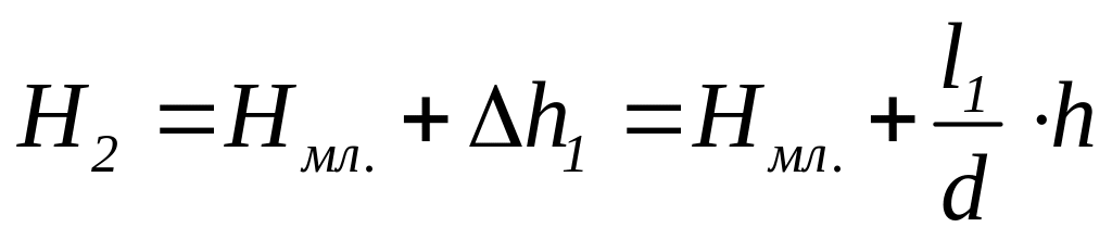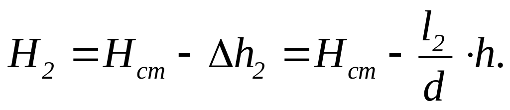 2. Отметку точки, расположенной между горизонталями (напр., точки 2) определяют из выражения