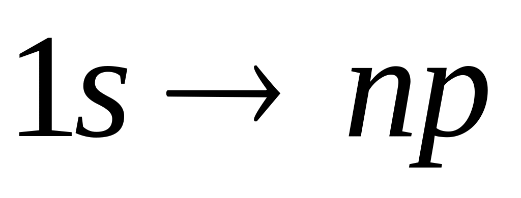 Состояние 1s является основным состоянием атома водорода, в этом состоянии атом обладает минимальной энергией. У любой частицы существует единственное основное состояние, возбужденных состояний существует неограниченное множество. Как было сказано в лекции 3, наблюдать экспериментально можно только ограниченное число линий в спектре, т.е. ограниченное число возбужденных состояний. Чтобы перевести атом в возбужденное состояние, ему необходимо сообщить дополнительную энергию. Это может быть осуществлено за счет теплового соударения атомов или за счет столкновения атома с достаточно быстрым электроном, или за счет поглощения атомом фотона. Фотон при поглощении веществом исчезает, передавая всю свою энергию атому. Поглощение части энергии фотона не может произойти, так как он является неделимой и неизменяемой частицей (элементарной, так же как электрон и многие другие). Процесс поглощения является резонансным – это означает, что поглотится может только такой фотон, энергия которого совпадает с разницей энергий двух уровней, между которыми происходит переход. С учетом введенных обозначений спектр поглощения атома водорода в основном состоянии должен состоять из линий, соответствующих переходам