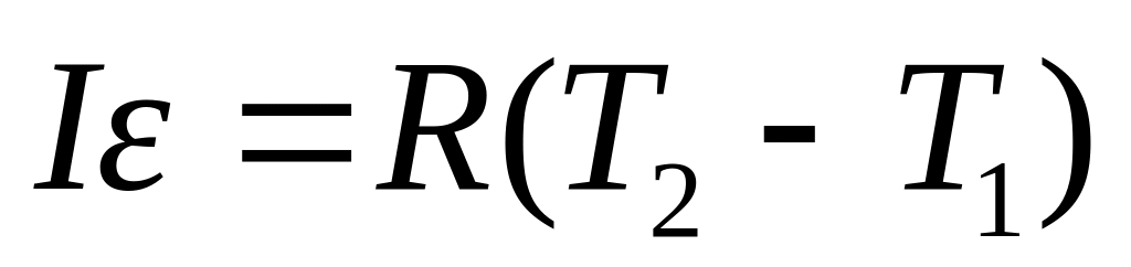 Вращение блока вызывается действием только сил натяжения нити, поскольку моменты сил тяжести блока и реакции оси равны нулю. Тогда основное уравнение динамики вращательного движения для блока
