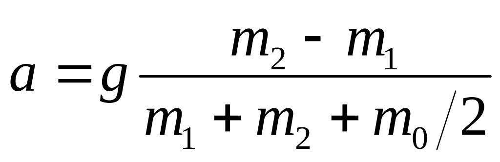 1. Через блок в виде диска массой m0 перекинута нить, к концам которой прикреплены грузы массами m1 и m2. Найти ускорение грузов. Трением пренебречь.