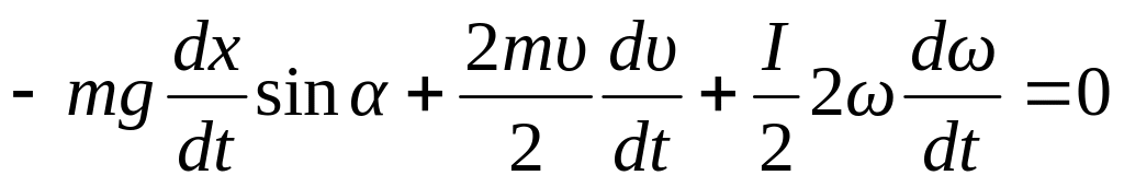 Рассмотрим шар в некоторый момент его движения по наклонной плоскости. Пусть его положение в данный момент определяется координатой х. Полная механическая энергия шара, при условии, что за нулевой уровень потенциальной энергии выбрана точка О, будет равна