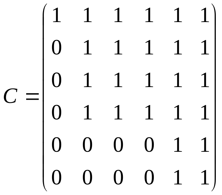 В матрице C содержатся информация о существовании связей между различными элементами графа G посредством маршрутов. Это значит, что в графе G тогда и только тогда существует маршрут из вершины xi в вершину xj, когда cij=1.