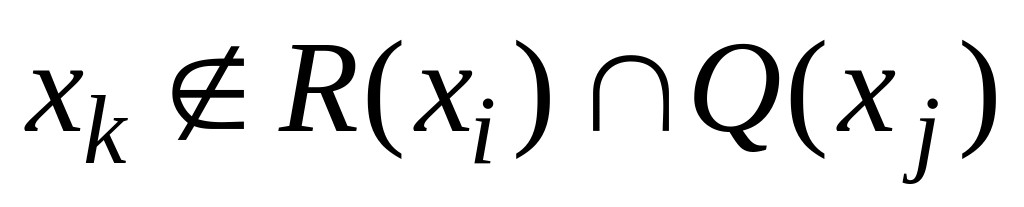 Из определений очевидно, что столбец xi матрицы Q (в котором qij=1, если xiÎQ(xi), и qij=0 в противном случае) совпадает со строкой xi матрицы R, т. е. Q=RT, где RT – матрица, транспонированная к матрице достижимостей R.