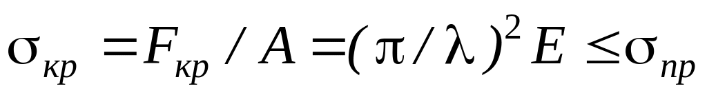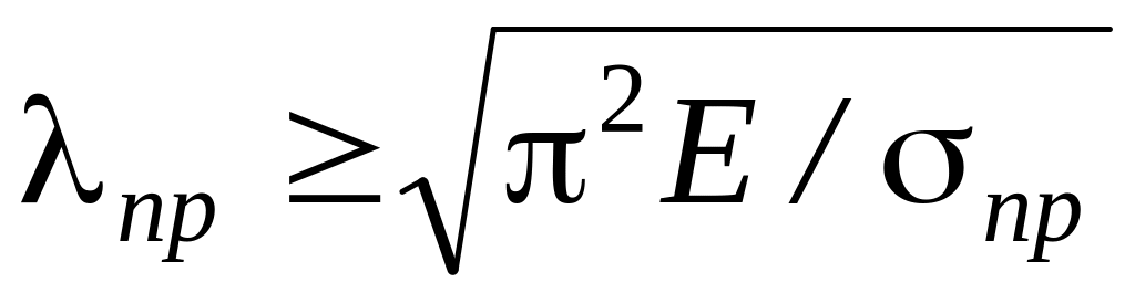 Тогда наименьшее (предельное) значение гибкости стержня, при которой расчет на устойчивость по формуле Эйлера дает достоверные результаты имеет вид