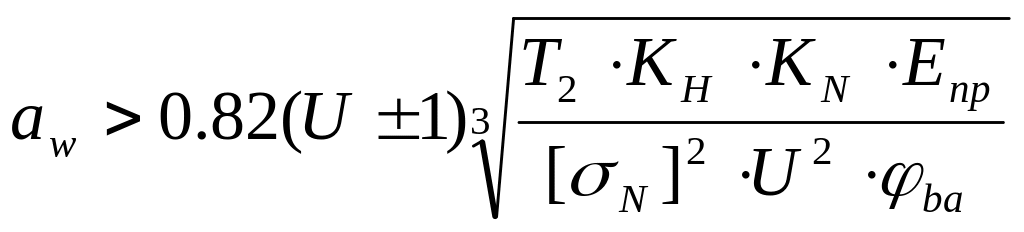 Поскольку для зубчатых колес используют не только сталь, но и другие материалы выражение для aw принимает следующий вид