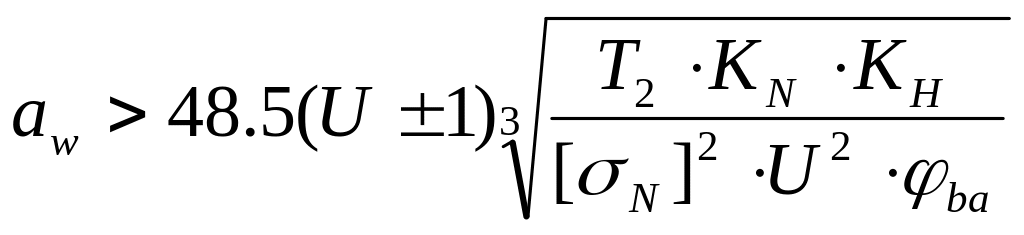 Учитывая, что b2=ba aw, получим формулу проектировочного расчета прямозубых передач
