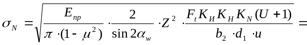 Допускаемые контактные напряжения определяют по формуле (Н/мм2 или МПа)