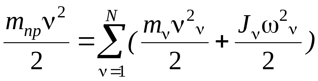 При решении ряда задач механизма с одной степенью свободы можно его заменить одной эквивалентной ему материальной точкой или вращающимся вокруг неподвижной оси телом (рис. 4.2). Приведенной к данной точке массой механизма называется воображаемая масса, сосредоточенная в данной точке данного звена, кинетическая энергия которой равна кинетической энергии всего механизма. Пользуясь этим определением, для кинетической энергии механизма получим