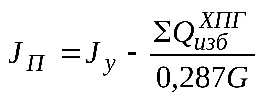 где G – производительность СКВ, кг/ч; JУ – удельная энтальпия воздуха, уходящего из помещения в ХПГ, кДж/кг; ΣQизбХПГ – суммарные полные теплоизбытки в помещении в ХПГ, Вт;