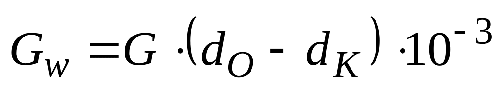 Количество воды, испарившейся при адиабатическом увлажнении воздуха в камере орошения Gw, кг/ч, определяется по формуле