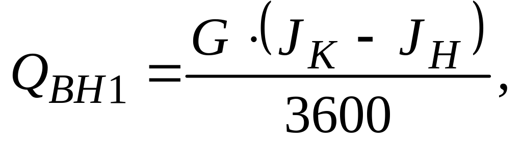 Расход теплоты в первом воздухонагревателе QВН1, Вт, определяют по формуле