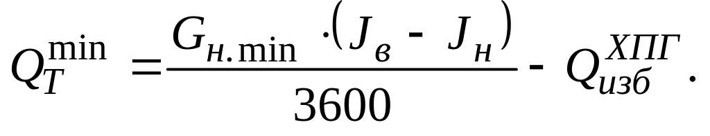 Минимальный неизбежный расход теплоты на осуществление процесса обработки воздуха QТmin, кВт, определяется по формуле