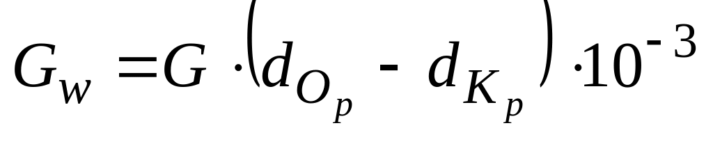 Количество воды, испарившейся при адиабатическом увлажнении воздуха в камере орошения, Gw, кг/ч, определяется по формуле