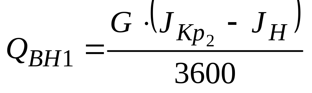 Расход теплоты в первом воздухонагревателе QВН1, Вт, определяют по формуле