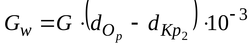 Количество воды, испарившейся при адиабатическом увлажнении воздуха в камере орошения Gw, кг/ч, определяется по формуле