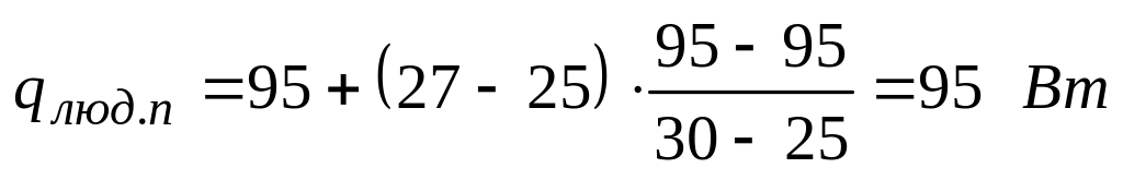 где qлюд.п – количество полной теплоты, выделяемой человеком в покое, Вт/(ч∙чел), по табл. 2.1.
