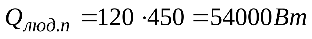Избытки полной теплоты Qлюд.п., Вт, определяются по формуле