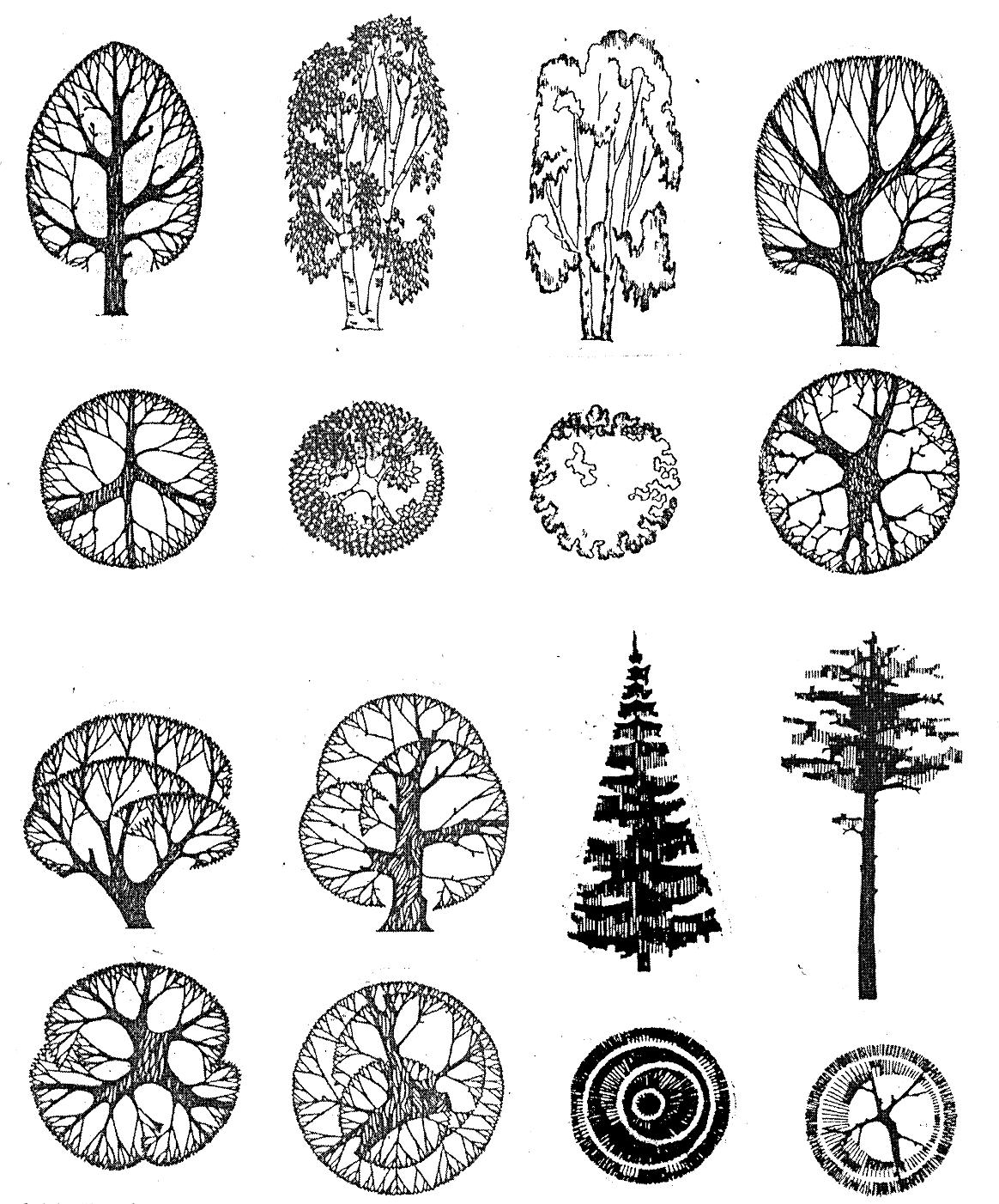Рис. 13.11. Графическое изображение деревьев лиственных и хвойных пород