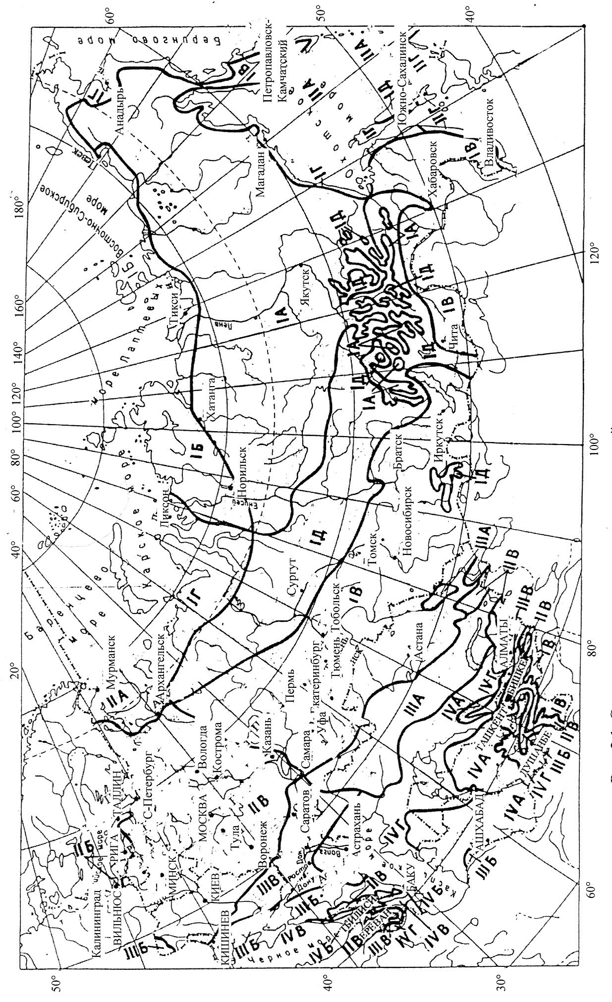 В Российской Федерации и странах ближнего зарубежья проведено климатическое районирование (рис. 2.1). Вся территория России и стран ближнего зарубежья, на которой осуществляется строительство, разделена на четыре строительно-климатические зоны, каждая из которых делится на подрайоны с определенными природно-климатическими условиями. Характеристика климатических районов и подрайонов приводится в табл. 2.1.
