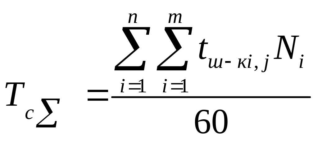 где tш-кi,j штучно-калькуляционное время выполнения j –й операции изготовления i-й детали, станко-мин;