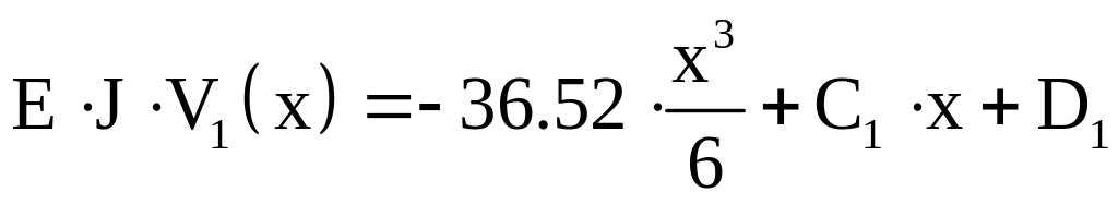 Зададимся началом координатных осей VOx на правой опоре (см. рис. 6). Руководствуясь правилами уравнивания постоянных интегрирования (см. п. 2.2), составим и проинтегрируем дифференциальное уравнение оси изогнутой балки на участках загружения.