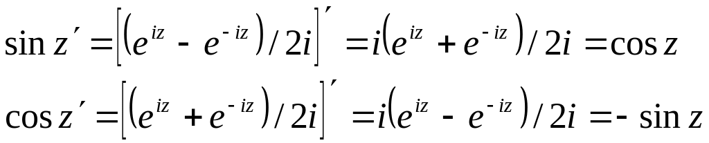 3. sinz и подчиняются обычным (из анализа действительной переменной) формулам дифференцирования: