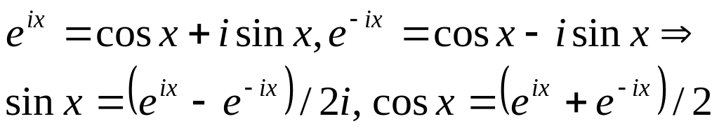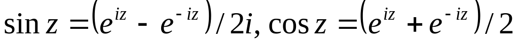 Формулы (28) дают выражение тригонометрических функций действительного переменного через показательную функцию.