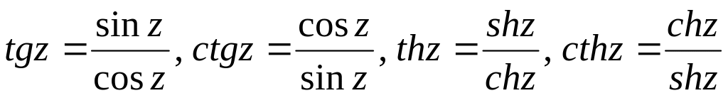 Эти функции в силу определения выражаются через тригонометрические по формулам