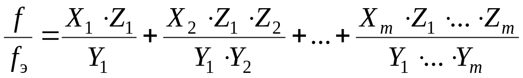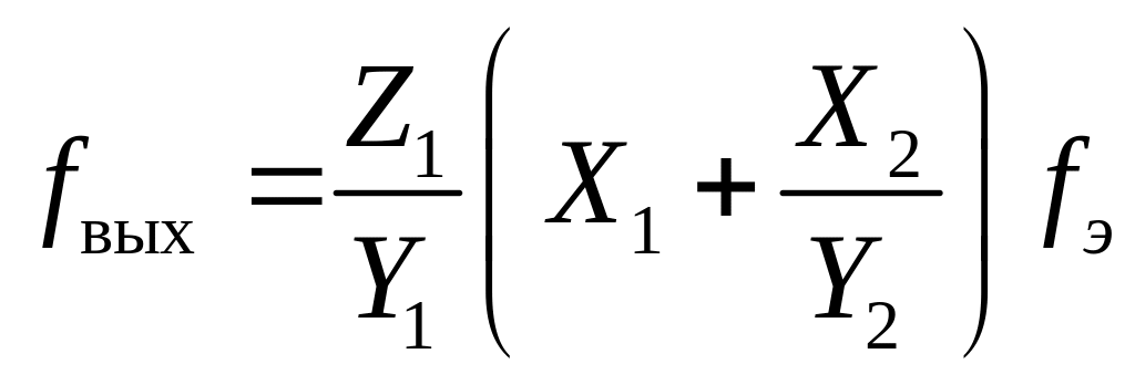 Как отмечалось в п. 4.1, различают пассивные и активные схемы синтеза частот. Структурная схема пассивного ССЧ, построенного на основе фильтрации частотных компонент преобразователей частоты, показана на рис. 5.1. На ней обозначено: ОГ – опорный (эталонный) генератор колебаний с частотой fэ; X1, X2, Z1 – умножители частоты, :Y1, :Y2 – делители частоты; См – смеситель; ПФ – полосовой фильтр. Частота выходного сигнала f связана с частотой опорного (эталонного) генератора fэ дробно-рациональным соотношением