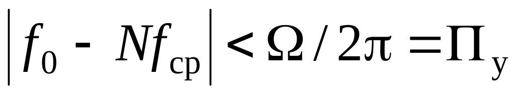 При разомкнутом на входе сумматора Сум кольце обратной связи, подстраиваемый автогенератор ГУН работает на частоте свободных колебаний f0, которая может отличаться от Nfср. Если после замыкания цепи обратной связи величина вносимой в контур ГУН корректирующей частотной расстройки достаточна для полной компенсации разницы между f0 и Nfср, то возможен режим синхронизма, в котором обеспечивается точное совпадение частоты колебаний ГУН с частотой эталонного колебания при фиксированной разности фаз этих колебаний.