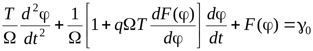 Величину t = 1/WF¢(j1) называют постоянной времени линеаризованной ФАПЧ. Заметим, что для синусоидальной характеристики F(j) = sin j крутизна F¢(j1) = cos j1, а координаты точек равновесия определяются расстройкой: j1 = arcsin g0, j2 = p – j1. Это значит, что величина постоянной времени ФАП не остается фиксированной, а меняется в широких пределах при изменении расстройки g0 от 0 до 1.