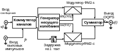 Рис. 6.13. Структурная схема модулятора сигнала с фазовой квадратурной модуляцией со сдвигом ОФМ-4