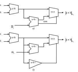 В случае прямой логической реализации суммирование по модулю mi для двух операндов а и b, находящихся в диапазоне {0, 1, ..., mi -1}, выполняется по следующей формуле: