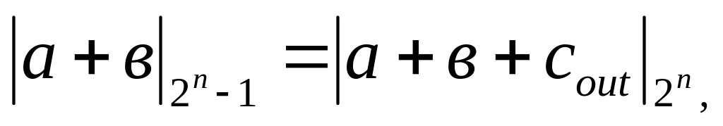 Формула (3.4) соответствует реализации сумматоров с так называемым циклическим переносом из высшего разряда в низший (end-around-cany adder). То есть, если перенос cout равен 1, то входной перенос младшего разряда также равен 1 и вычисляется сумма (а + b+ 1), а если перенос cout равен 0, то входной перенос младшего разряда равен 0 и вычисляется сумма (a + b). Отметим, что такой сумматор трудно реализовать напрямую с использованием обычного двоичного сумматора, так как подача выходного переноса старшего разряда cout на входной перенос младшего разряда создает комбинационную петлю и может привести к возникновению автогенерации. Авторами разработаны методы логического синтеза указанных сумматоров на основе BDD-технологии, которые позволяют реализовать быстродействующие сумматоры с ускоренным переносом по модулю ( ), увеличивающие быстродействие в 2 и более раз.