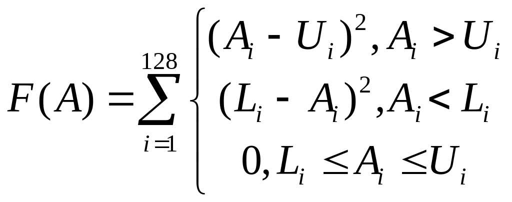 где U и L – максимальный и минимальный уровни в полосе пропускания и в полосе удержания, A – АЧХ данной особи.