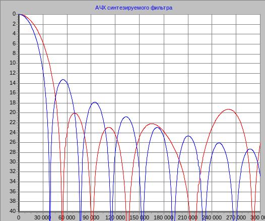 Для данного фильтра коэффициент прямоугольности равен 2.397. Для реализации этого фильтра, часть коэффициентов которого равна нулю, используется специальная