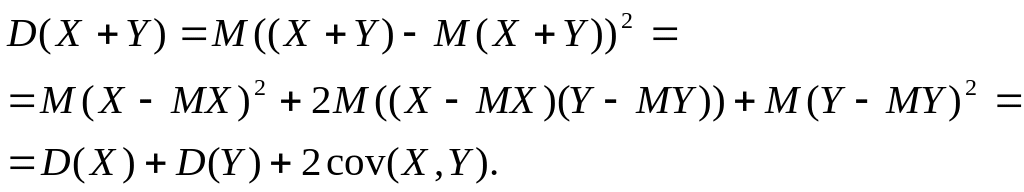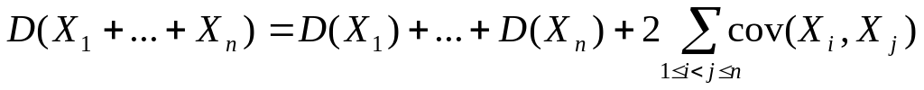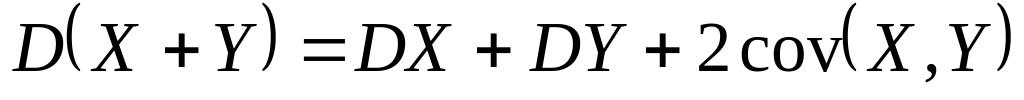 Заметим, что введение понятия ковариации позволяет записать выражение для дисперсии суммы случайных величин и к уже имеющимся свойствам дисперсии добавить еще одно: