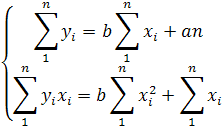 Взяв первые производные от функции (192) по каждому коэффициенту а и b и приравняв их нулю, после ряда несложных преобразований получим систему, состоящую из двух уравнений