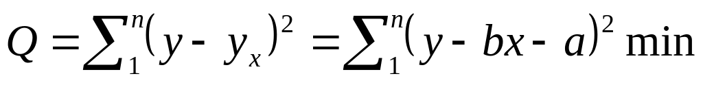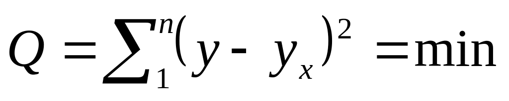 По этому методу после исследований взаимосвязи между двумя переменными величинами получают ряд опытных данных, которые при графической интерпретации образуют корреляционное поле. На этом графике проводят линию, характеризующую зависимость между величинами так, чтобы сумма квадратов отклонений опытных данных, полученных в результате эксперимента, от этой линии была минимальной. Если характер взаимосвязи выражен уравнением (158) ух = f(х), то указанное условие примет вид