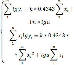 Для удобства в табл. 67 [20] приведены часто используемые при анализе технологических процессов зависимости (в аналитической и графической формах), а также системы нормальных уравнений для определения постоянных коэффициентов (параметров) по методу наименьших квадратов.