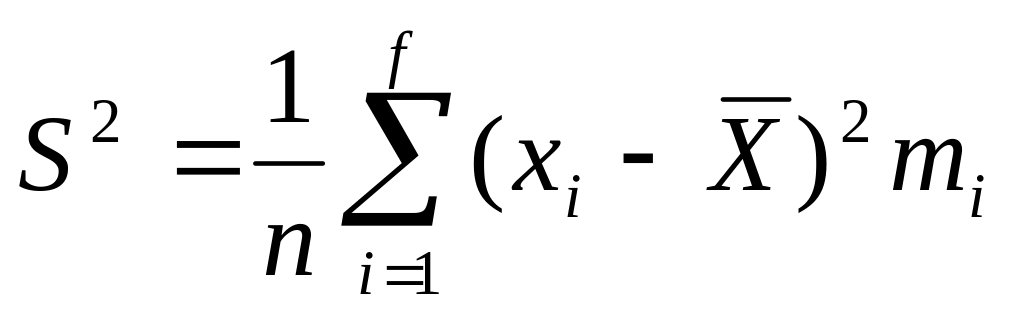 Дисперсию S2 определяют как сумму произведений квадратов отклонений наблюдаемых значений случайной величины от ее среднего арифметического значения на соответствующие частости: