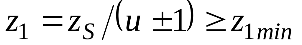 Значение z1 округляют в меньшую сторону до целого числа. Для прямозубых колес z1min = 17; для косозубых и шевронных z1min = 17соs3β. В исключительных случаях при необходимости иметь z1min < 17 передачу выполняют со смещением для устранения подрезания зубьев и повышения их изломной прочности. Коэффициент смещения
