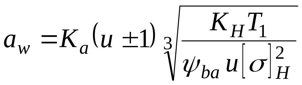 где Kа = 450 для прямозубых колес; Kа = 410 для косозубых и шевронных, МПа1/3;