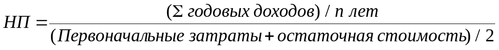 (первоначальный капитал + конечный капитал) / 2 =