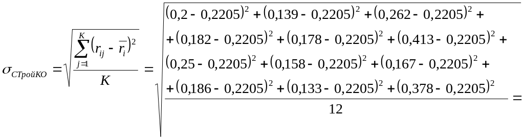 αСтройКО = ri-(Z+(rm-Z) βi)= 0,2205 - 0,1463 = 0,0742;