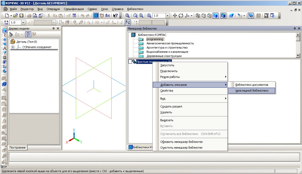 Результаты спроектированной библиотеки в Visual Studio 2010 представлены на рисунке 7, когда модуль уже подключен к менеджеру библиотек в Компас V12.