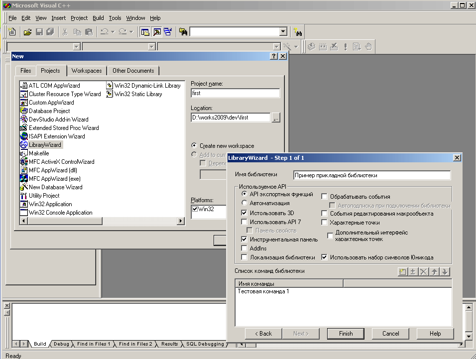 Создать прикладную библиотеку и подготовить ее к работе в системах КОМПАС, старше V10, можно двумя способами: воспользоваться мастером создания библиотек Visual C++ 6.0 или изменить имеющиеся в директории «..\SDK\C++\ Visualc» рабочие проекты прикладных библиотек.