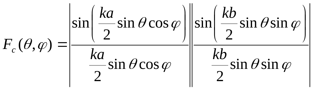Нормированная ДН прямоугольной излучающей поверхности по напряженности поля может быть получена по теореме перемножения характеристик направленности: