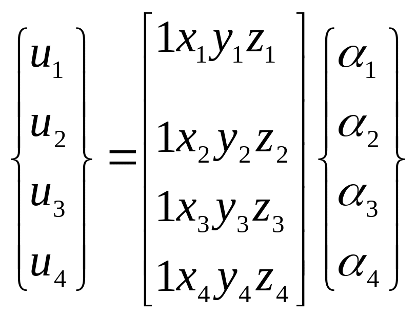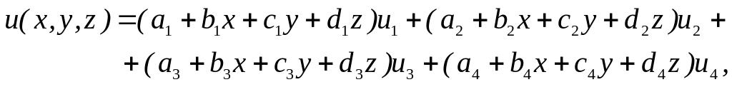 Аппроксимация перемещений u(x,y,z) вдоль оси x в явном виде примет вид: